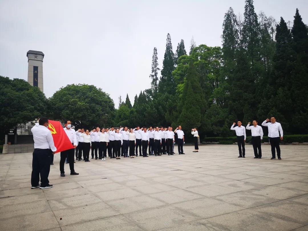 環(huán)繞在英雄豐碑前,全體黨員面對鮮紅的黨旗,目光堅(jiān)毅,舉起右手,重溫入黨誓詞、重憶入黨經(jīng)歷、重問入黨初心。伴著雄壯的樂曲大家共同唱響《我宣誓》紅色歌曲,用飽含激情的歌聲向人民英雄致敬。