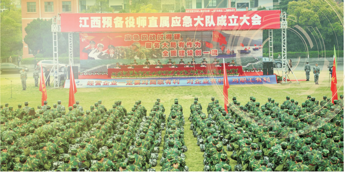 方大特鋼現(xiàn)編有江西陸軍預(yù)備役步兵師應(yīng)急直屬大隊(duì),成立于2011年4月9日,下設(shè)一個警衛(wèi)調(diào)整連,一個有線電連和一個無線電排,編制300人。主要任務(wù)為搶險救災(zāi)、應(yīng)急維穩(wěn)處突。公司預(yù)備役官兵多次圓滿完成搶險救災(zāi)任務(wù),連續(xù)三年被江西陸軍預(yù)備役步兵師評為先進(jìn)連隊(duì),2020年7月還參加了江西省永修縣三角聯(lián)圩潰堤抗洪搶險任務(wù),轉(zhuǎn)移受災(zāi)群眾百余人,受到軍地領(lǐng)導(dǎo)的肯定和當(dāng)?shù)厝罕姷馁澴u(yù)。
